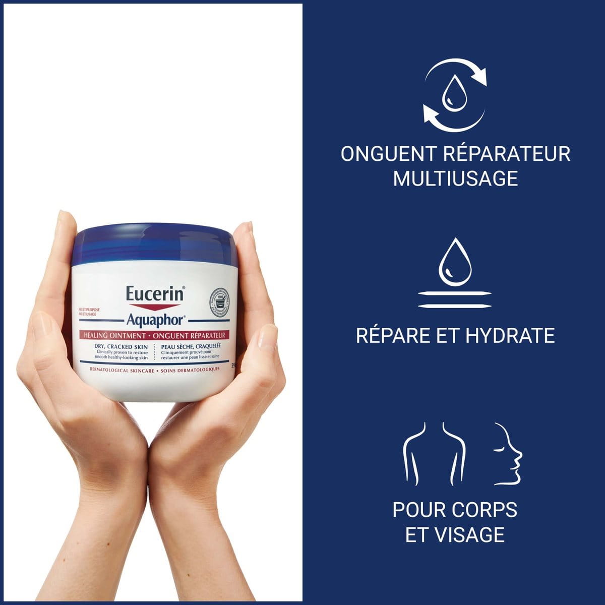 L'Onguent réparateur pour la peau Aquaphor d'Eucerin est bien toléré, doux, non comédogène, et ne contient aucun parfum, colorant, alcool ni agent de conservation ajoutés qui pourraient causer, chez certaines personnes, l'irritation de la peau ou la dermite de contact.